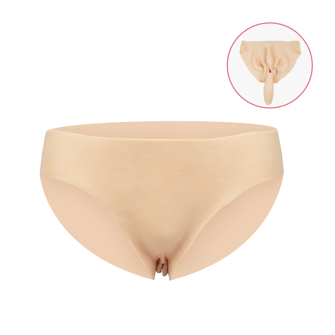 Cyomi Crossdress silicone fake vagina pants or panties are very soft, skin-friendly, non-toxic and harmless, closing to the real skin. Fake vagina pant with pubic hair can pee and sex, like a real female. Widely recommended for crossdresser, transgender, drag queen, mastectomy, cosplay, transvestism or male to female.